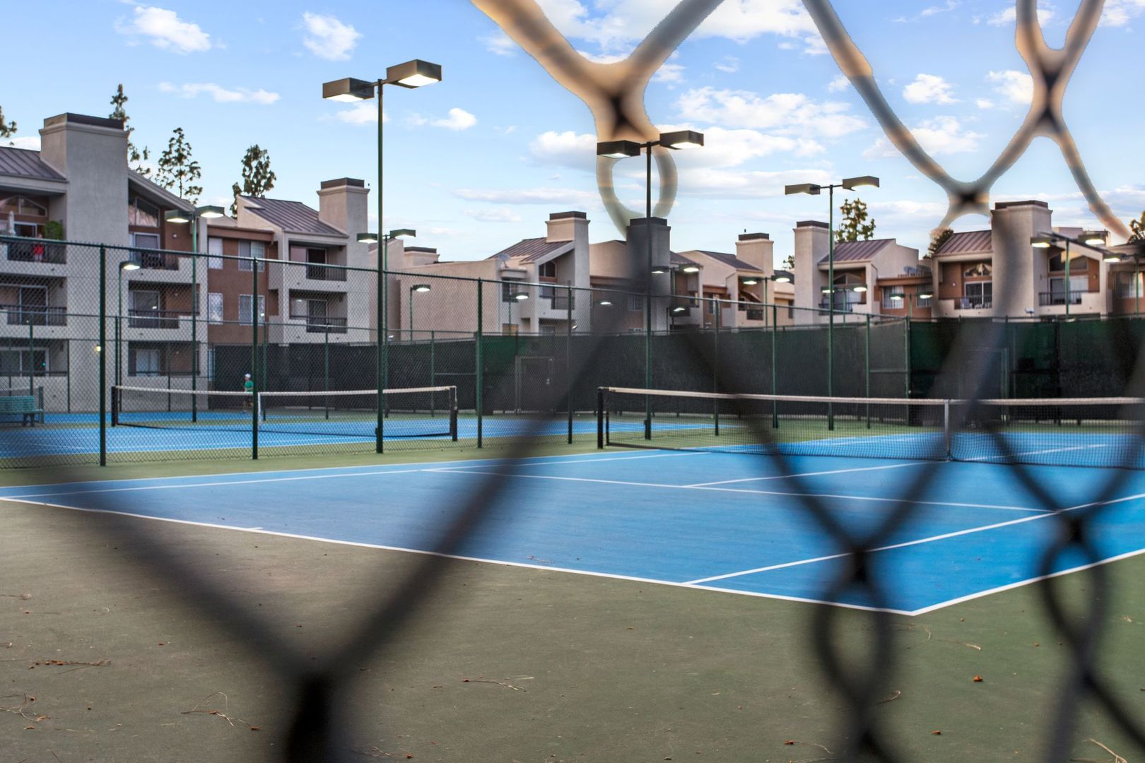Residents of The Met enjoy access to a range of amenities, including multiple pools and spas, tennis courts, a fitness center, and controlled access entry within a landscaped community setting.