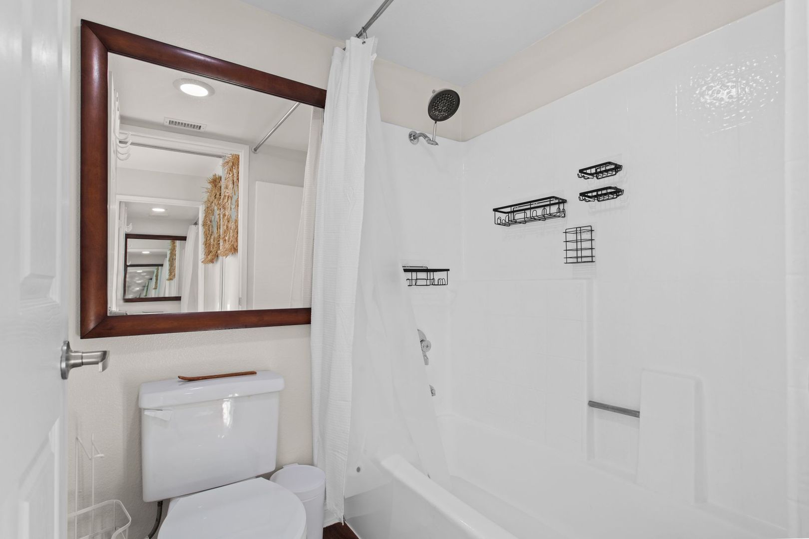 The unit is offered fully furnished as shown, providing a convenient, move-in ready setup. Both bedrooms are well-proportioned, with the primary suite offering an en-suite bathroom. Additional features include in-unit stacked washer and dryer, central air and heat, and assigned parking.